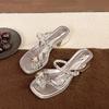 Versatile Thick-heeled Slippers Women's Outerwear Clip New 2025 Summer Rhinestone Cool Slippers Toe Fashion Sandals