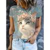 Women's Cat Printed T-shirt, Oversized Loose Casual Wear, Fashionable and Versatile