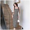 Women's Color Block Striped Knit Camisole Dress - Korean Retro Slim Fit Hip-Hugging Design