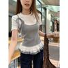 2025 Summer Lace Trim Color Block Sling T-shirt: Sweet & Spicy Girl Design