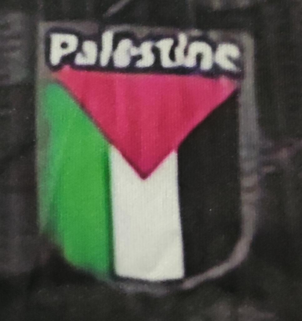 Colour is faded and it LOOKS like it says. FREE PALESTLINE