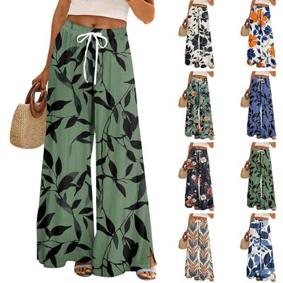 Women Summer Boho Palazzo Pants High Waist Wide Leg Floral Printing Casual Trousers With Pockets