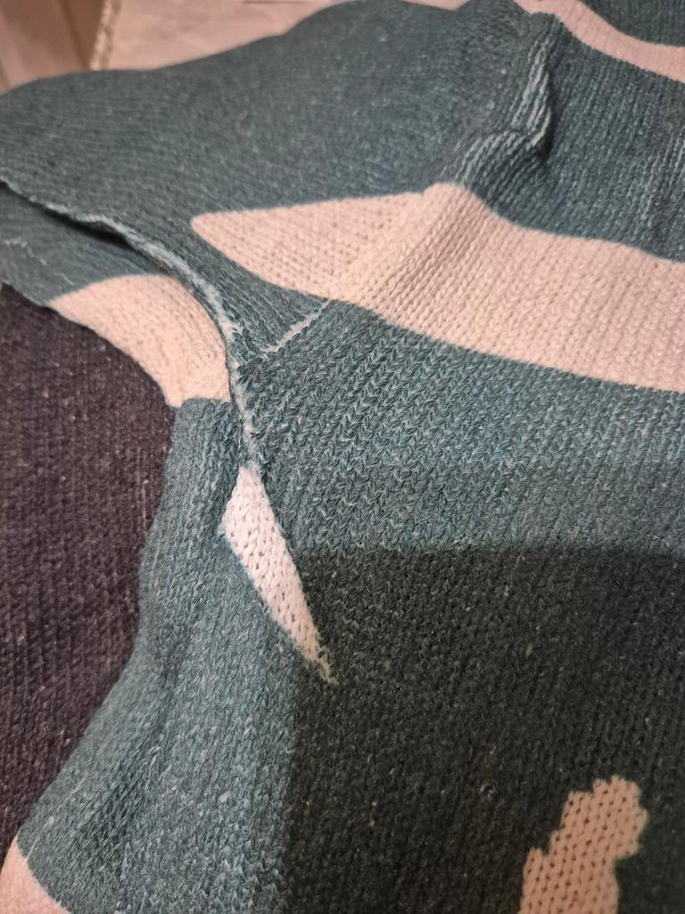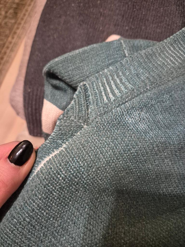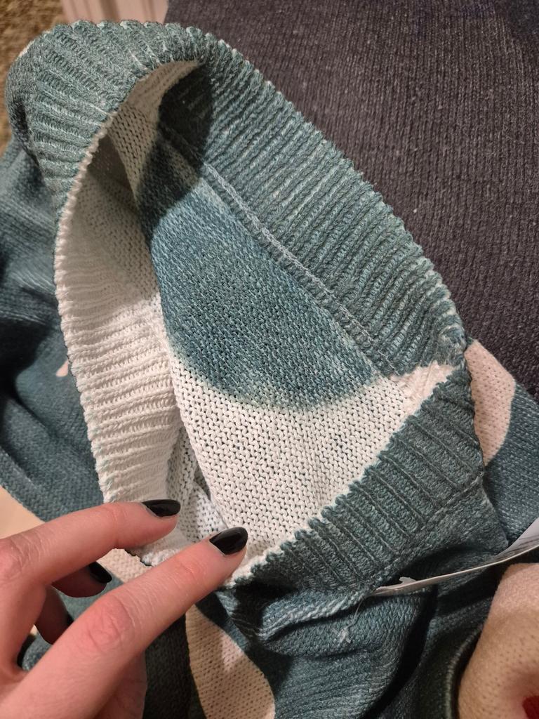 Bought both colors. One for myself, and one for my boyfriend. The sweater is thin, the base is white. The entire color and "print" is literally painted on the fabric. That is, there is no question of a knitted pattern.. This is more of a sweatshirt than a sweater. The fabric feels unpleasant to the touch, like putting on a plastic bag. We laughed at first, but then it wasn't funny anymore. It's a shame about the ruined mood.