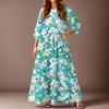 Women's Casual Fashion Floral Print Three-quarter Sleeve Long Dress With Pockets