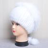 Hot Sale Real Mink Fur Hat For Winter Women Imported Knitted Mink Cap With Fox Fur High Quality Women Warm Real Fur Beanies Hat