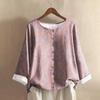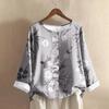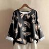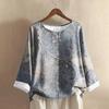 Women's Casual Long-sleeved Round-neck Retro Gradient Printed Cotton And Linen Top