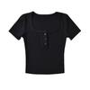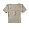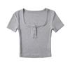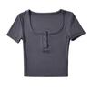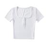YPFF Women's Retro Square Neck Button Short Sleeve Crop Top