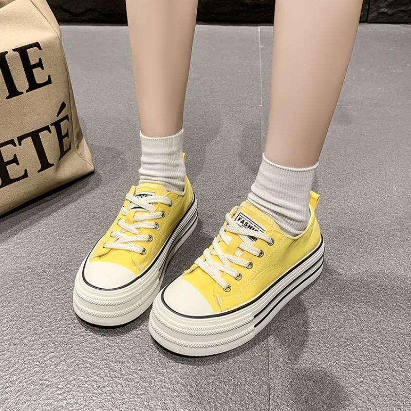 Summer Dopamine Simple Canvas Shoes Women's New Platform Running White Shoes College Style Lace-up Casual Shoes