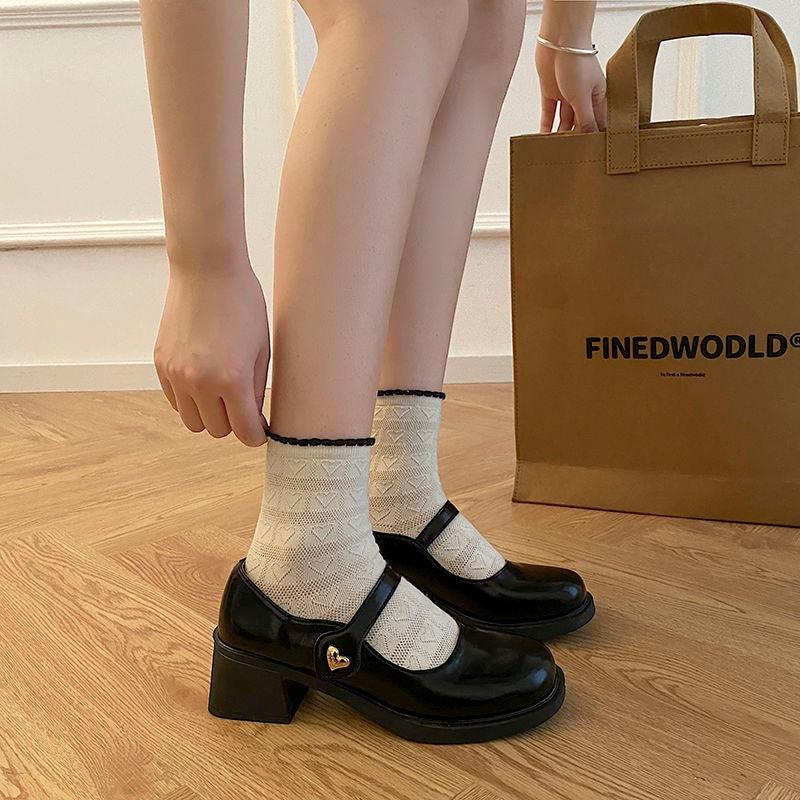 2025 New French Mary Jane Small Leather Shoes Women's Spring and Autumn Versatile One-word with Round Head Thick Heel Jk with Skirt Single Shoes