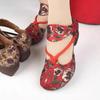 Fashion Ethnic Style Hollow Leather Sandals 2025 Medium Thick Soft Leather Printed Bun Breathable Comfortable Mother Shoes