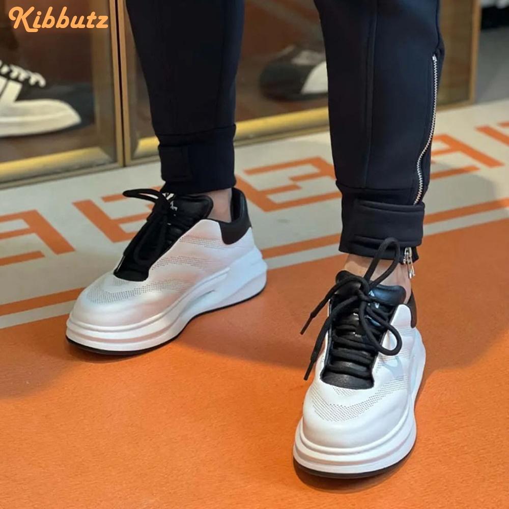 Fashion Mesh Leather Round Toe Shoes 2025 New Men Casual Sneakers Shoes Platform Lace Up Mid Shoes Spring Autumn New Fashion Sneakers