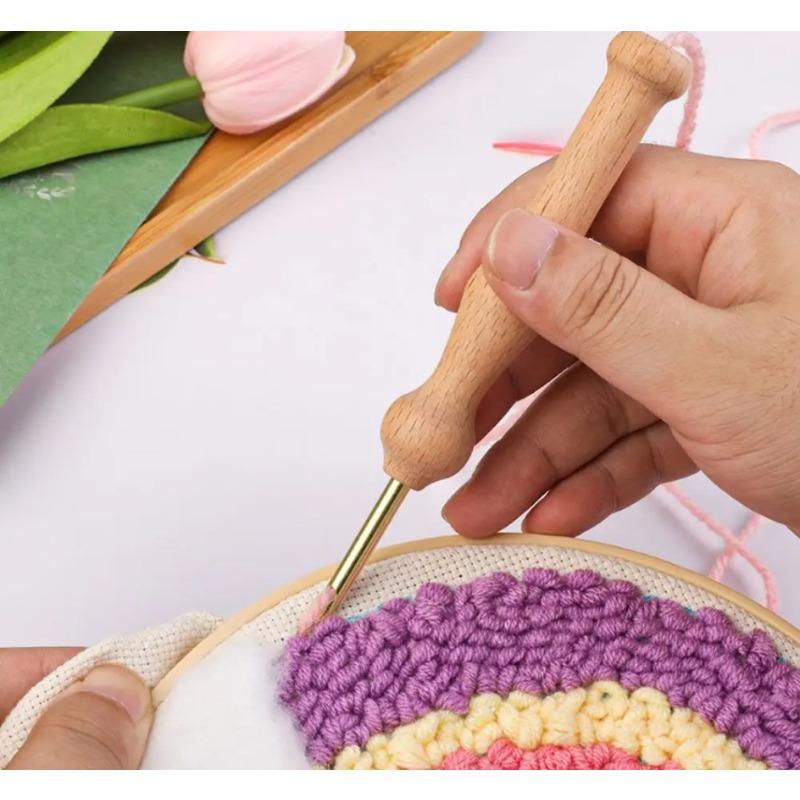 Wooden Handle Poking Needle Set Embroidery Punch Needle Weaving Tools Creative Pattern Manual Craft DIY Sewing Tool