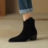 2025 New Middle Heel Soft Leather Thick Heel Pointed Western Boots Women's Boots Chelsea Niche Short Autumn Short Boots Winter