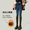 #Pregnant Women's Fleece Jeans, Winter Fleece Warm Pipe Pants, Small Pants, Pencil Pants, Thin Belly Support Pants