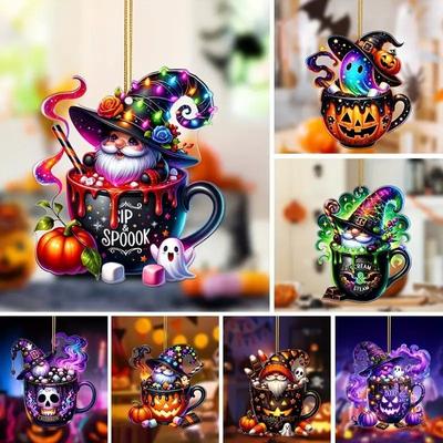 Halloween Little Witch Festival Pendant Cross Border Acrylic Flat Car Decoration Pendant Home Hanging Accessory