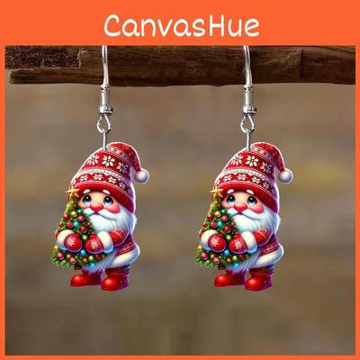 Christmas Santa Themed Claus Holding Tree Pattern Women Acrylic Earrings