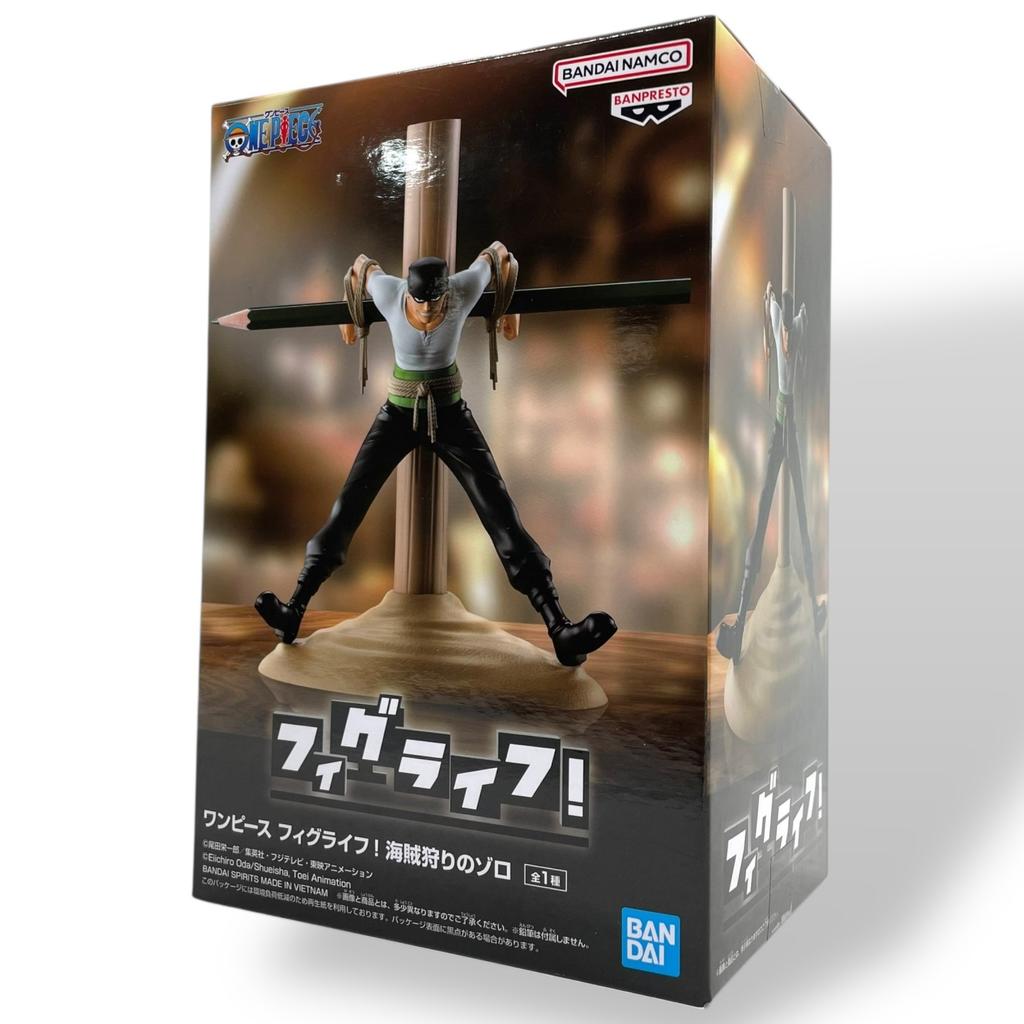 This is a three-dimensional figure of the famous One Piece character, "Pirate Hunter Zoro," from BANDAI's popular series "Fig Life."