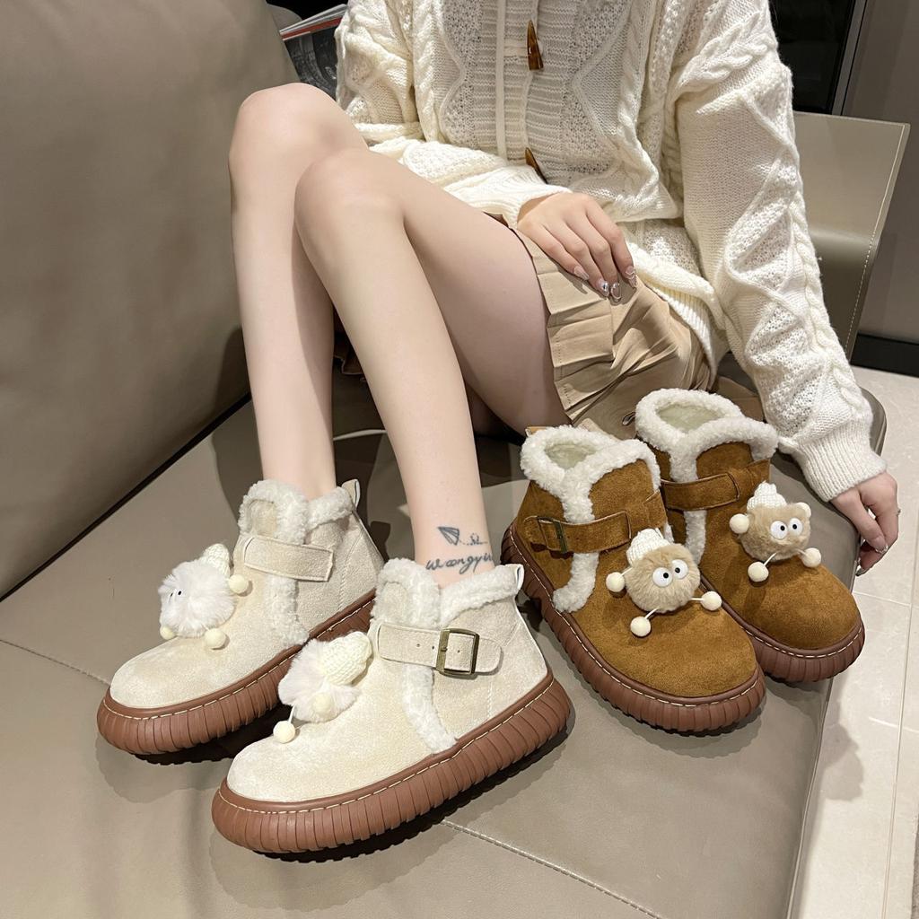 Snow Boots Children 2025 Winter Piled Thickened Comfortable Non-slip Warm Fur Integrated Wool Cotton Shoes Women's Shoes