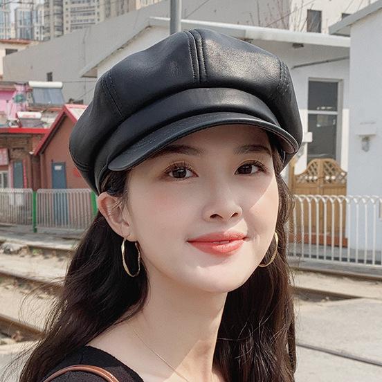 Women's Genuine Lambskin Leather Duckbill Beret - Trendy Autumn Winter Octagonal Newsboy Painter Hat