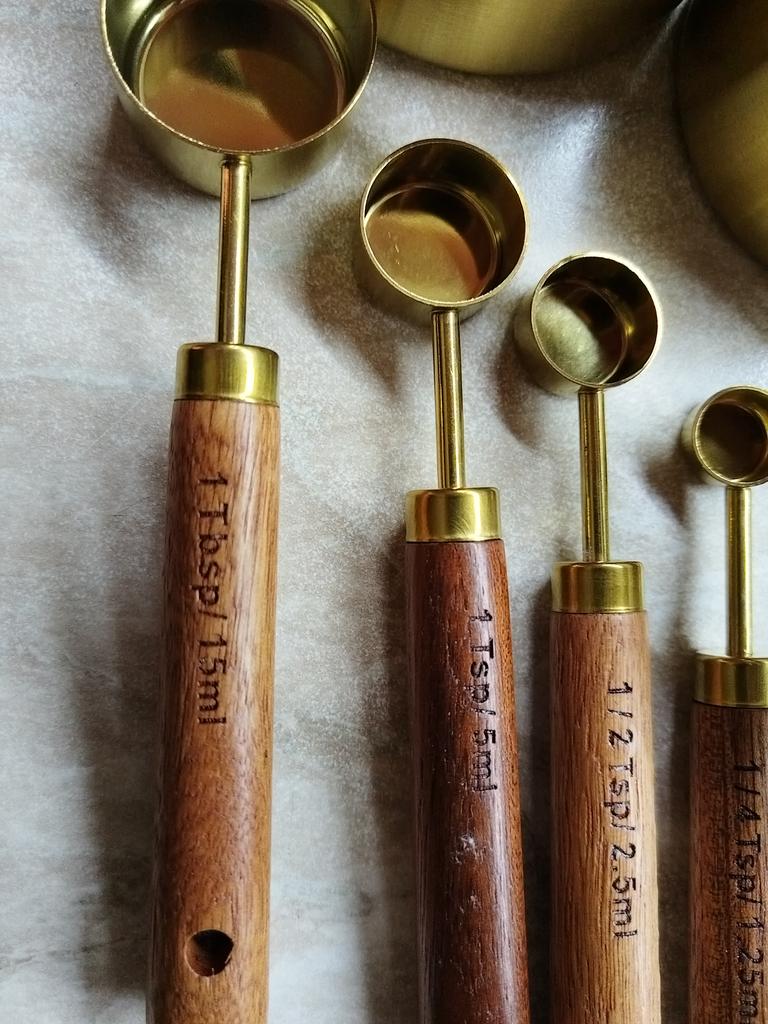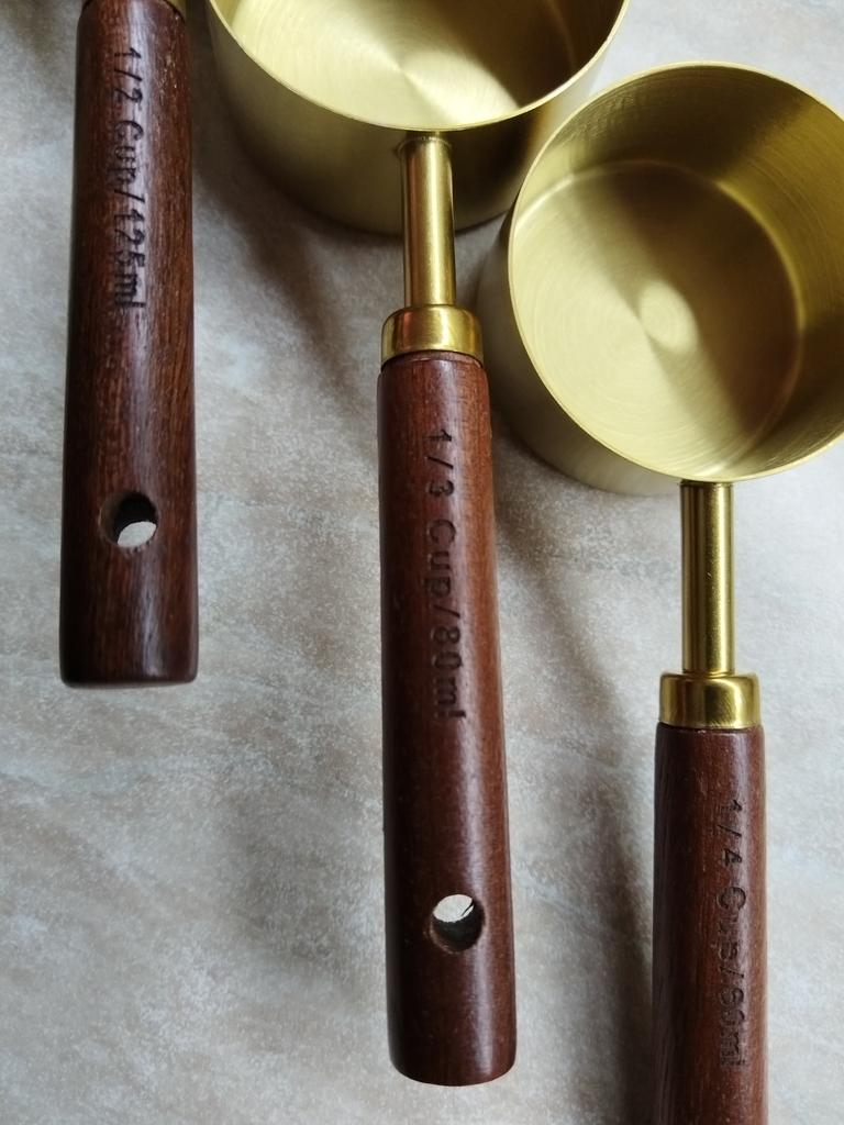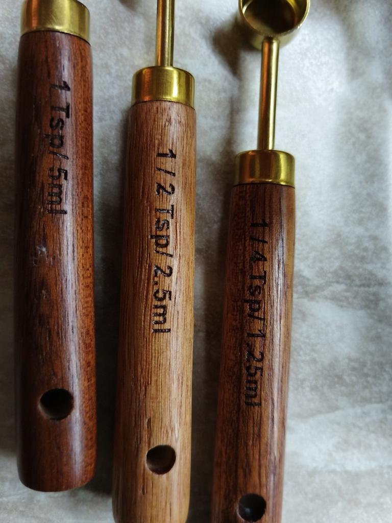 Nice set of measuring spoons, with wooden handles.