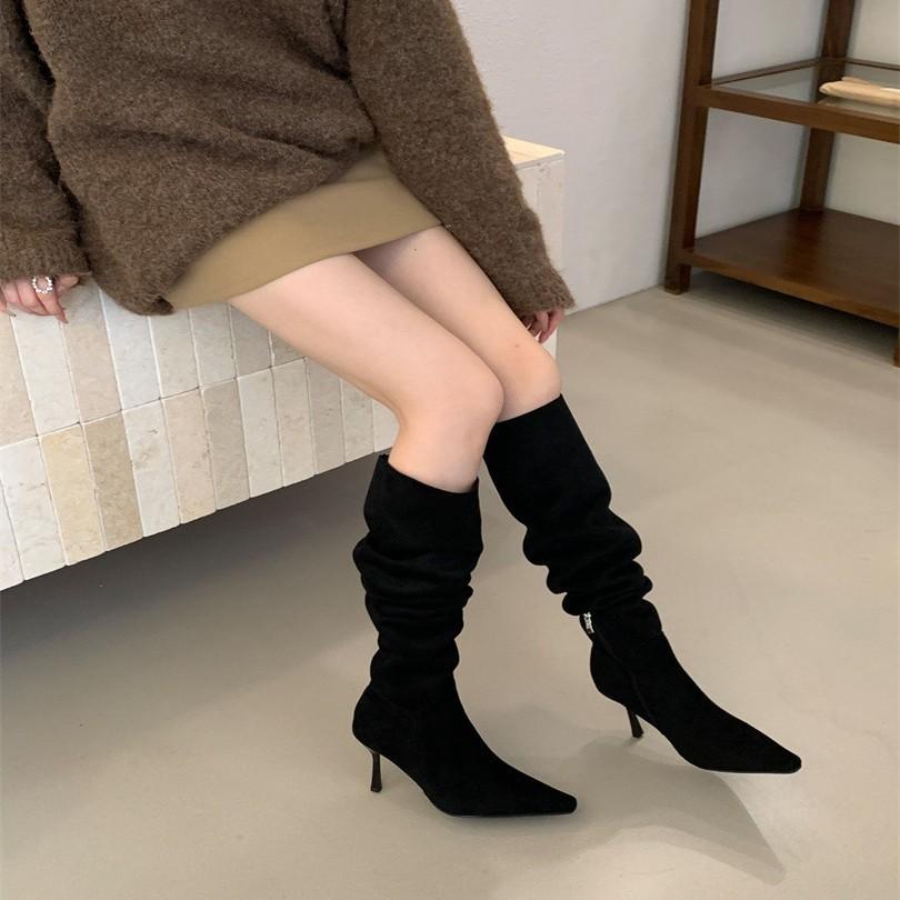 Two-wear Foldable Stacking Boots, Suede High-heeled French Pointed Over-the-knee Boots, Women's Boots, New In Autumn and Winter 2025