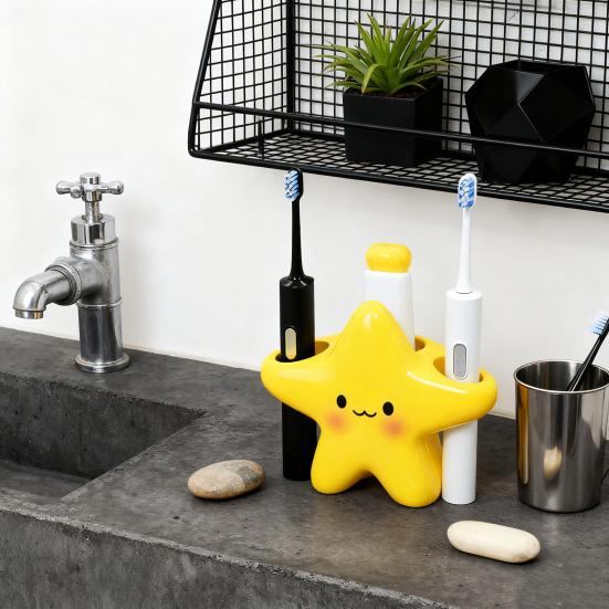 Its charming cartoon star shape brings a cute and creative touch to your bathroom decor, making it a perfect fit for home decoration. This versatile holder can accommodate both manual and electric toothbrushes, along with standard toothpaste tubes, helping you save space and maintain a tidy bathroom.