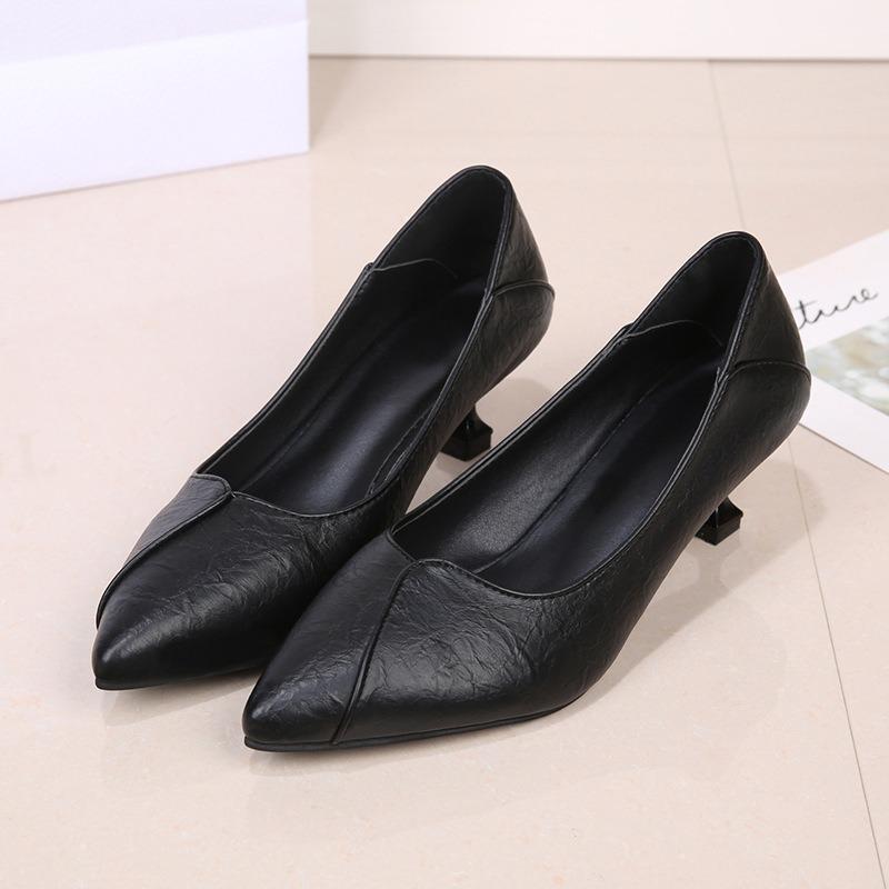 Not Tired Feet Professional Women's Shoes New Soft Leather High Heels Pointed Comfortable Middle Heel Black Work Temperament Single Shoes