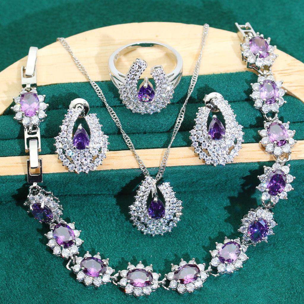 Europe and The United States Hot Purple Zircon Bracelet Necklace Earrings Lady Jewelry Set