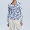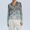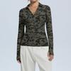 Women's Fashion Casual Print V-Neck Long Sleeve Button-Down Top