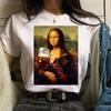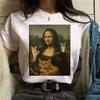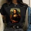Vintage Humor Mona Lisa Print Women Fashion Top Funny Rose Mona Lisa T-Shirt Classic Camise Breathable Short-sleev
