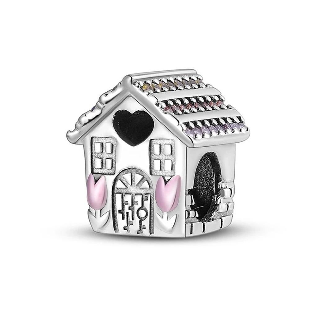 Original Charms Copper Colorful Zircon Flower House Beads Fit Charms Plata Bracelets For Women Women Jewelry Making Diy