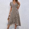 Women's V-Neck Waisted Floral Short Sleeve Dresses