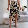 Women's Fashionable Floral Print Elastic Waist Ruffle Edge Mid Length Irregular Skirt