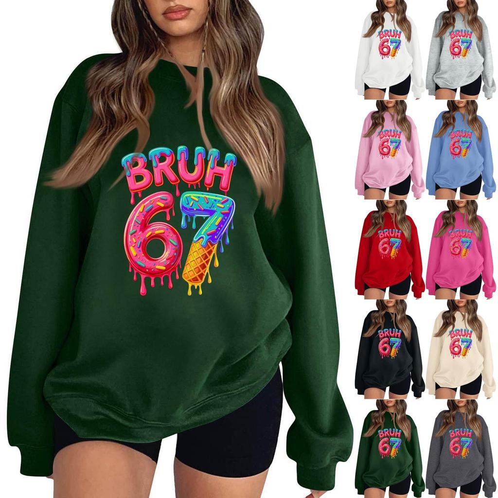 Women's Fashionable Casual Long-Sleeved Round-Neck Printed Pullover Sweatshirt