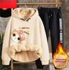 Autumn Winter Women's Lamb Velvet Hoodie Set Women's Thickened Sweatshirt Pants Full Sleeve Long Pants Student Outfit