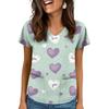 Women's V-neck Valentine's Day Printed Short-sleeved Top With Pockets And Side Slits, Suitable For Caregivers.