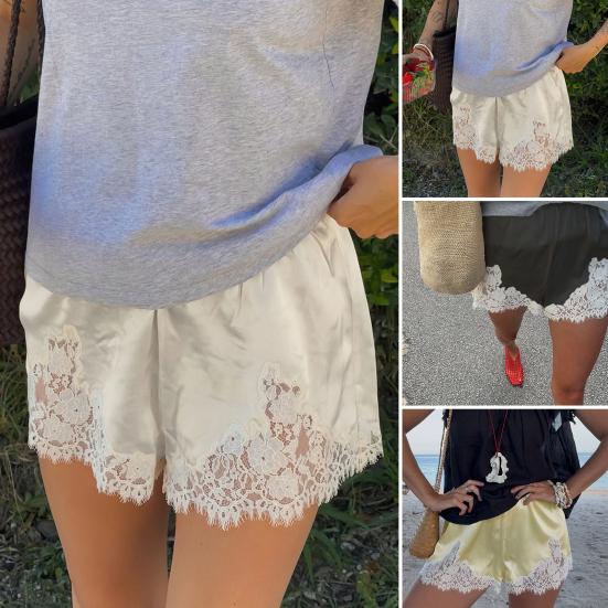 Effortless Charm Enhancement: Elevate your style effortlessly with this pair of lace-edged satin shorts. Whether you're lounging at home, strolling on the beach, or capturing memorable moments, these versatile shorts are a must-have addition to your closet.