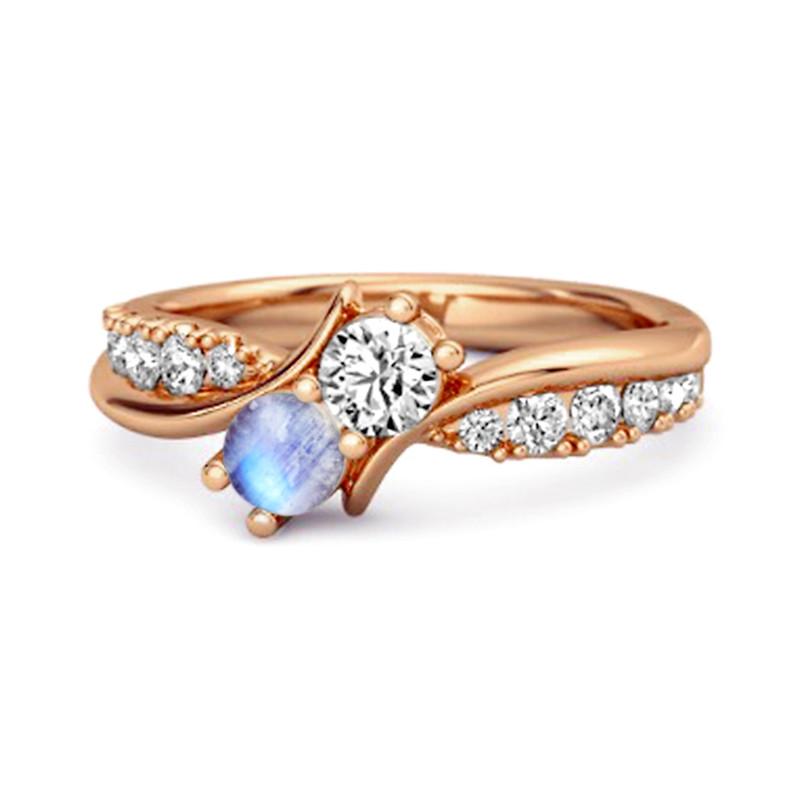 Moonstone Twin Stone Pave Ring - 925 Sterling Silver Rose Gold Vermeil