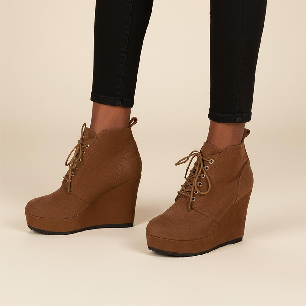 New Women Boots Plus Size Chunky Platform Ankle Boots Woman Autumn Winter Booties Fashion Lace Up Wedge Shoes for Women
