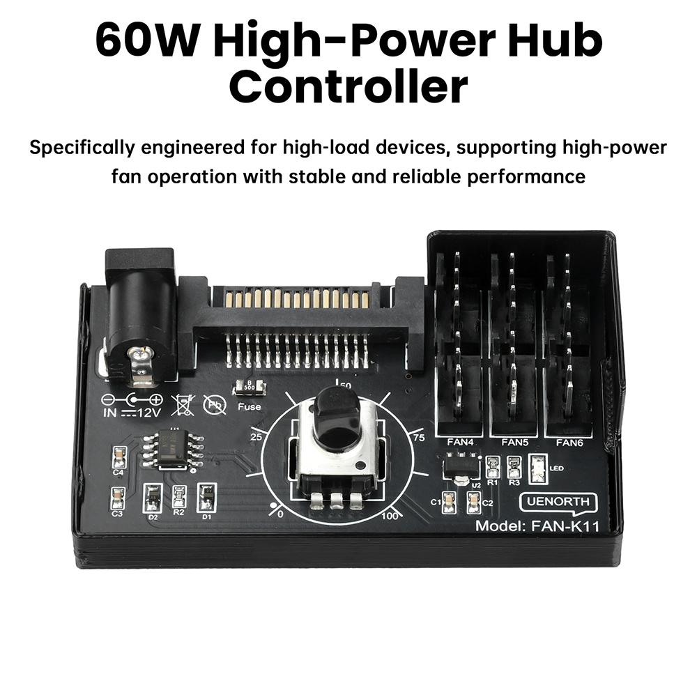 Computer Fan Speed Controller 60W High Power Hub Sata DC Power Controller NAS Server 4Pin Fan Speed Control PWM Speed Regulation