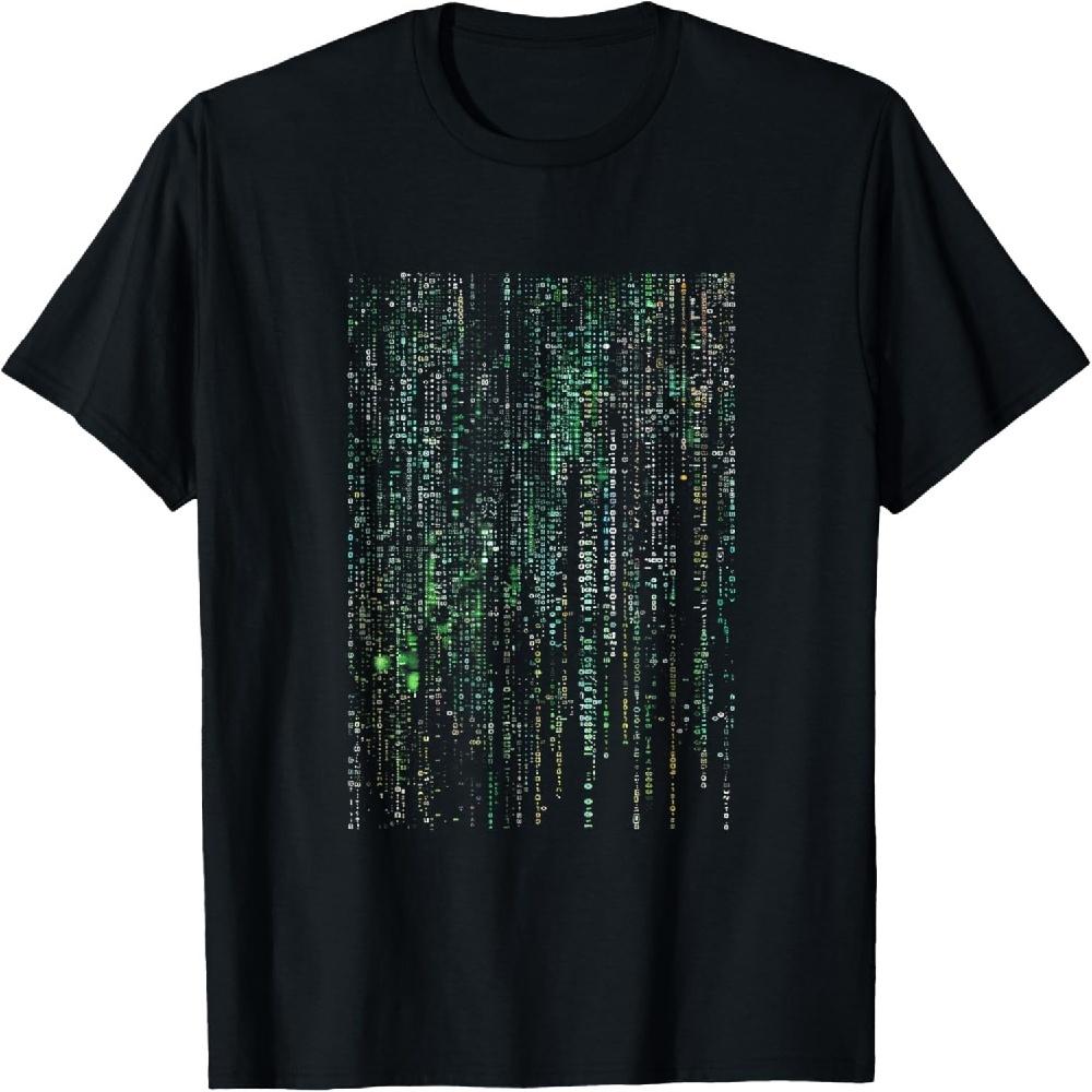 Binary Code Matrix Glitch Effect Digital Pattern T-Shirt