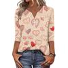 Women's T Shirt Print Button 3/4 Sleeve Daily Weekend Fashion Basic V- Neck Regular Top