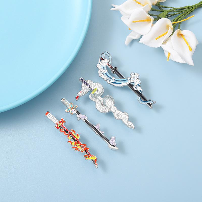 Metal Demon Slayer Pins Kimetsu No Yaiba Katana Badge Shinobu Brooches Tanjirou Sword Enamel Backpack Pin Anime Accessories Gift