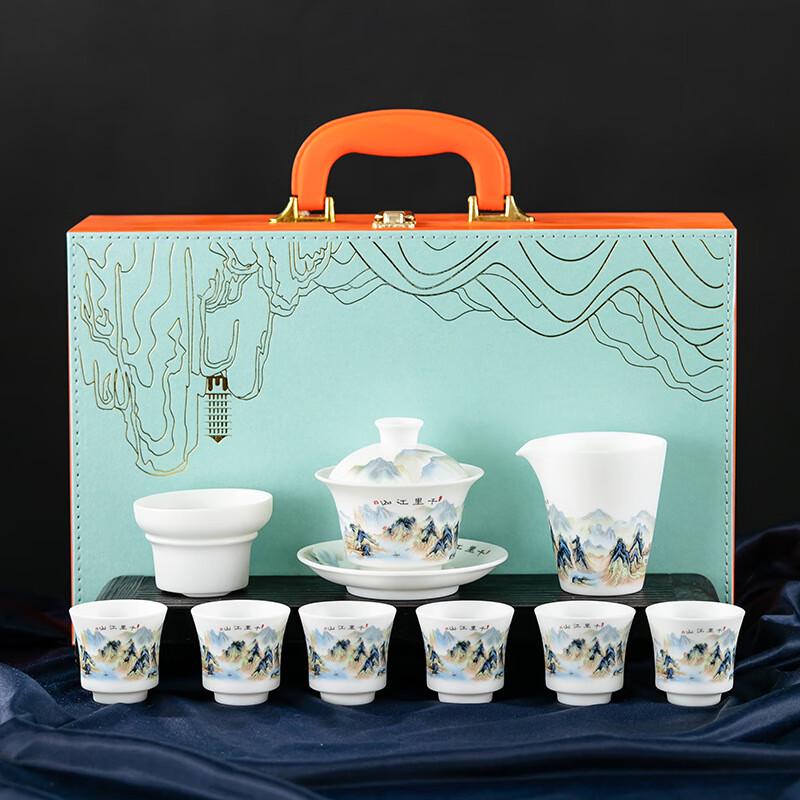 Thousand Miles Landscape Mutton-Fat Jade Porcelain Tea Set