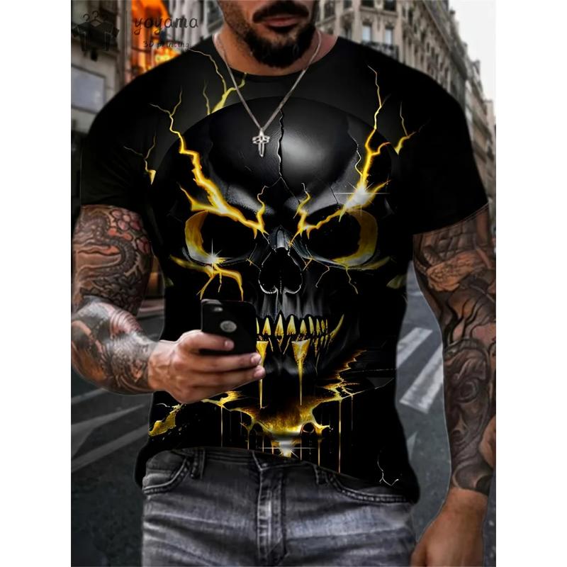 New Men's Horror Skull Print T-Shirt 3D O-Neck Short Sleeve Fashion Oversized T-Shirts Men's Summer Street Clothing