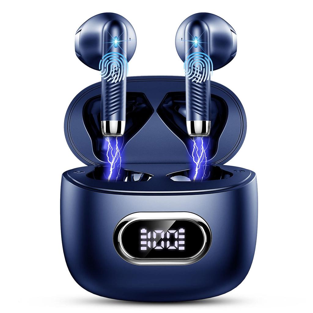 [42-Hour Playback & Clear LED Display] On a full charge, the noise-canceling wireless earbuds offer 6-8 hours of playback time on their own, and up to 80 hours with the charging case, for a combined 42 hours. This eliminates the need for frequent charging, making them perfect for commuting, business trips, and conference calls. The Type-C port supports fast charging, allowing for even faster charging. Even if the earbuds run out of battery, a 10-minute charge will give you 60 minutes of playback time. These wireless earbuds also feature an LED display that clearly shows the remaining battery charge. The charging case's remaining charge level will display from 100% to 1%, and the LED display will clearly indicate when the charging case is charging.