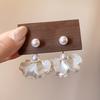 18k Real Gold Electroplated Flower Fringed Pearl Earrings Stud Earrings Super Fairy Temperament Earrings Women