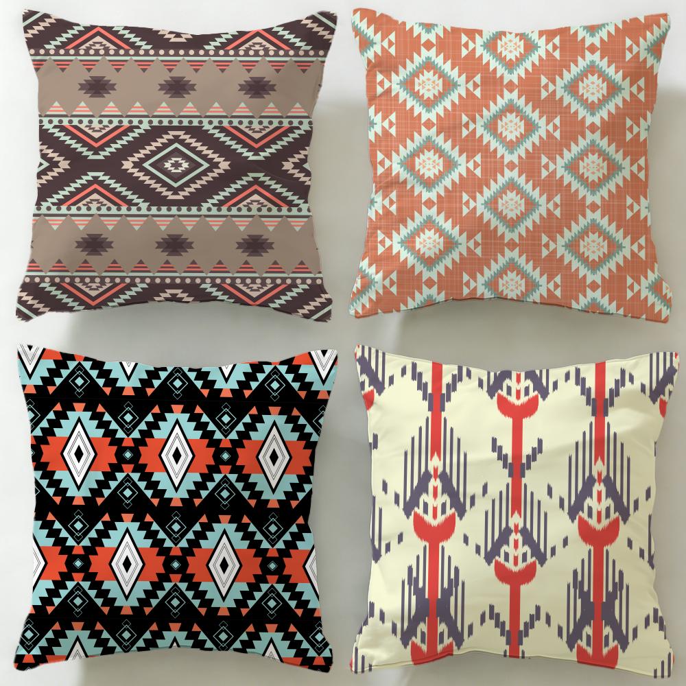 Classic Pattern Native Fabric Pattern Cushion Cover Soft & Easy-Wash Pillow Case – Versatile for Couch, Bed, Travel and Office