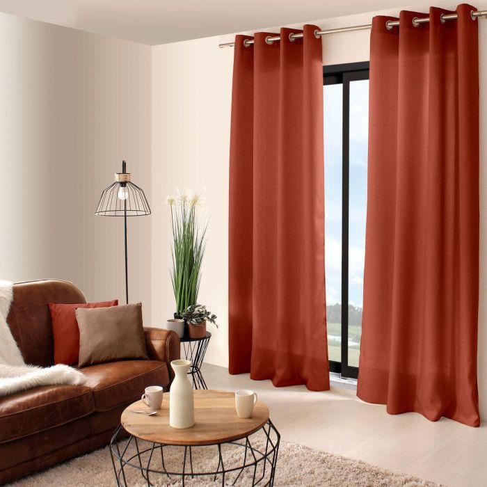 Rideau oeillets chaby 140 x 240 cm 100% polyester bachette coloris terre cuite