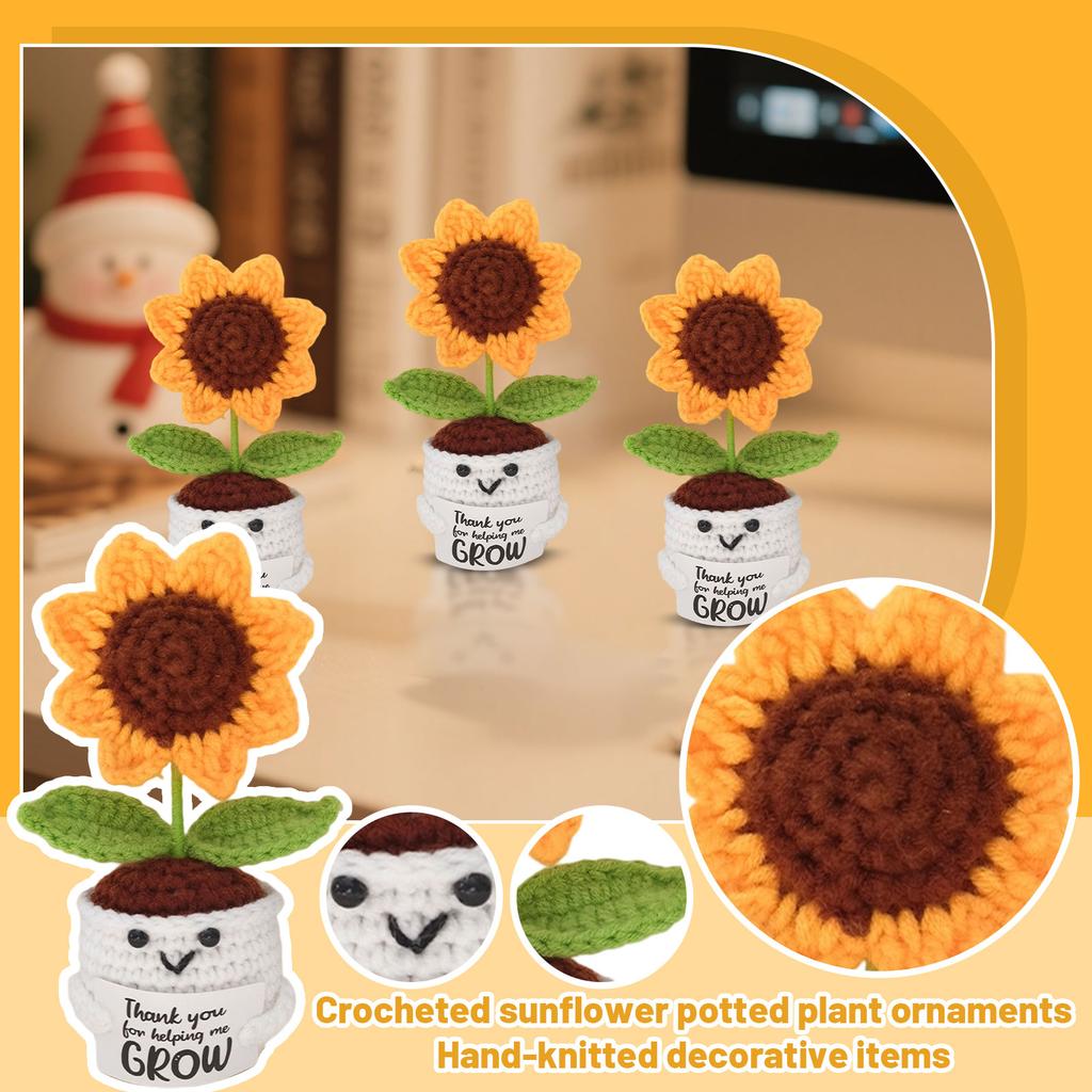 Handmade Knitted Finished Product Of Crocheted Sunflower Potted Ornament